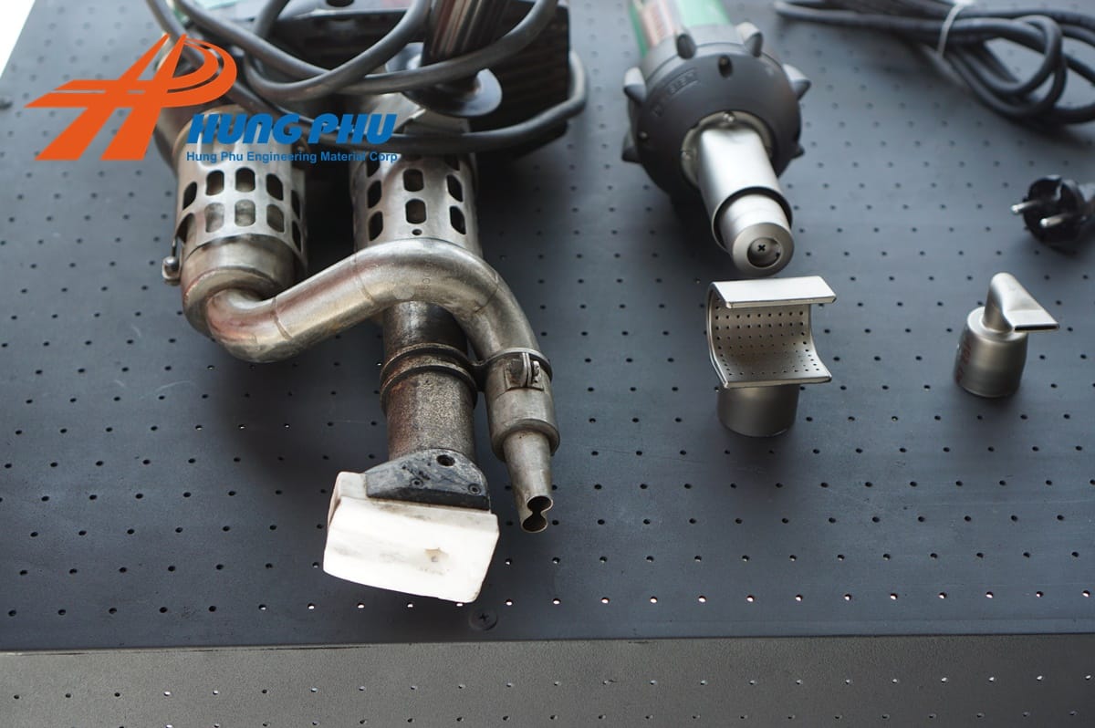 Máy hàn kép nêm nhiệt hoặc thổi khí nóng mà Hưng Phú cho thuê. Được nhập từ Thụy Sĩ có thương hiệu Twinny T5, Twinny T, Twinny S, Comet 1500W, Comet 1200W, Weldy 800W. Được nhập khẩu từ hãng Leister Thụy Sĩ
