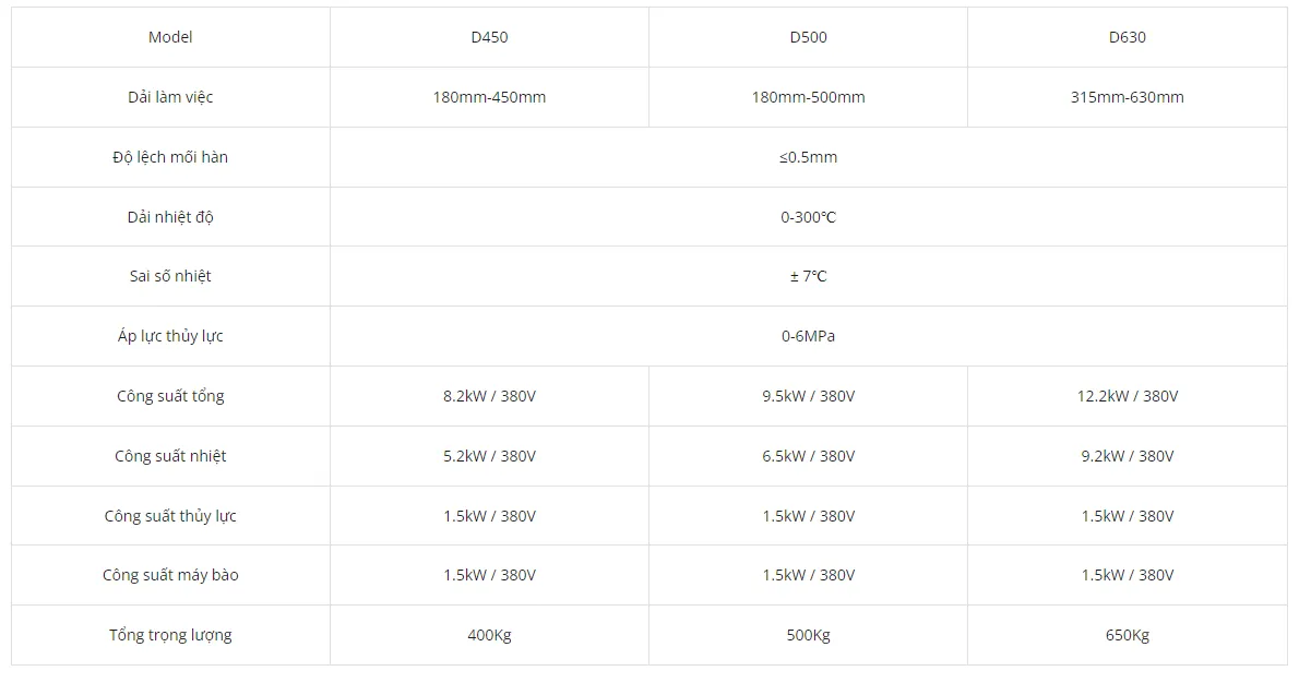 - Thông tin sản phẩm Máy hàn thủy lực 315-630 từ VN Đại Phong.