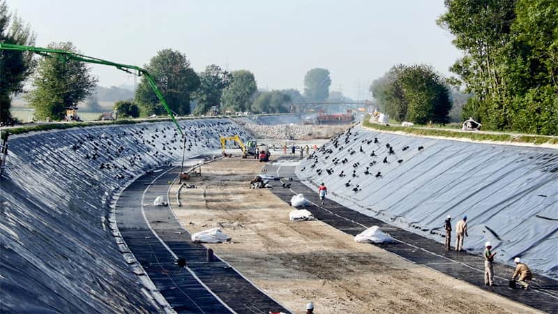 Nếu mặt bằng thi công không đạt tiêu chuẩn – tức là không phẳng và không chắc chắn – thì hiệu quả chống thấm của màng HDPE sẽ bị ảnh hưởng nghiêm trọng. Mặt bằng gồ ghề, lồi lõm sẽ tạo ra các điểm tập trung áp lực lên màng, khiến màng dễ bị rách, thủng hoặc biến dạng. Điều này đặc biệt nguy hiểm trong các công trình chịu tải trọng lớn, chẳng hạn như bãi chôn lấp chất thải hoặc hồ chứa nước.