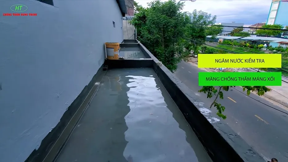 Tiến hành ngâm thử nước để kiểm tra hiệu quả của lớp màng chống thấm máng xối
