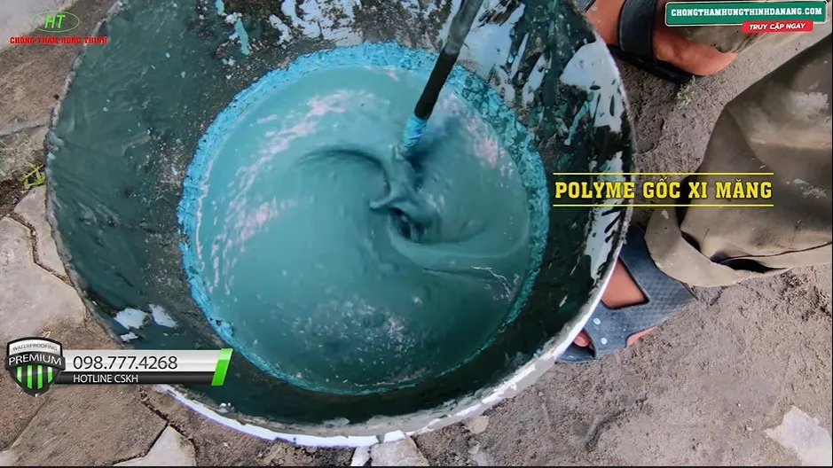 Trộn vật liệu chống thấm thật kỹ càng để đảm bảo đồng nhất