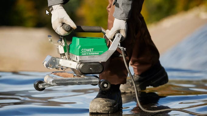 Nhờ hiệu suất mạnh mẽ, COMET 500 đạt được các mối hàn đồng nhất ngay cả khi xảy ra tình trạng thiếu điện áp. Ngoài ra, máy hàn địa kỹ thuật tự động COMET 500 của Leister cũng hàn các màng nhựa làm bằng PE, LLDPE, PP, TPO, FPO, PVC (vinyl) và CSPE. Điều này bao gồm các lớp lót ao hoặc màng được bịt kín an toàn trong các mỏ, bãi chôn lấp, v.v.