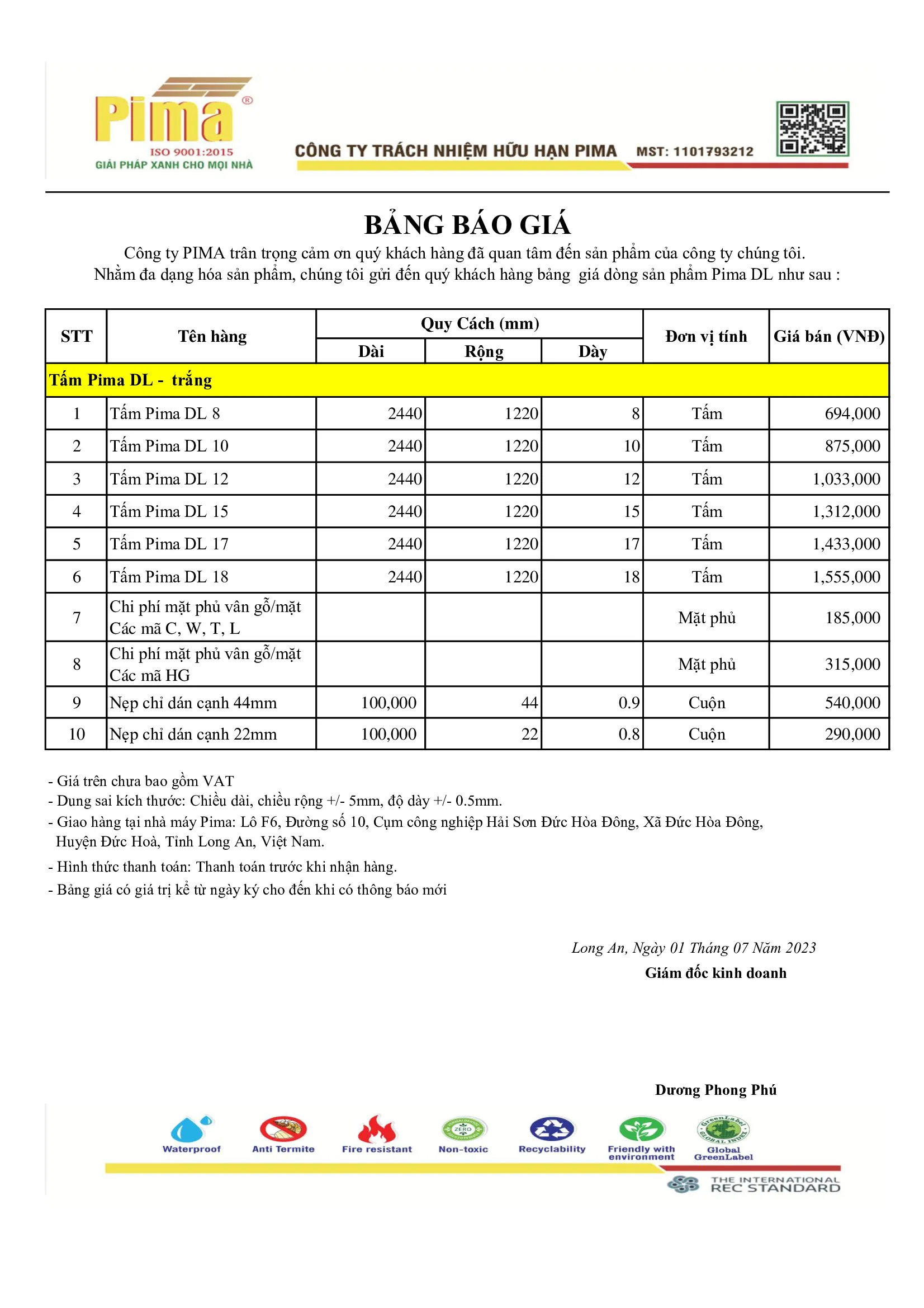 Tấm Pima trắng không chỉ là một vật liệu đơn thuần mà còn là giải pháp tối ưu cho không gian sống hiện đại, mang đến sự tinh tế, bền bỉ và thân thiện với môi trường. Với những ưu điểm vượt trội về khả năng chống thấm, chống mối mọt và dễ dàng gia công, tấm Pima màu trắng xứng đáng là lựa chọn hàng đầu cho mọi công trình nội thất. Nếu bạn đang tìm kiếm một vật liệu chất lượng cao để kiến tạo không gian mơ ước, hãy liên hệ ngay với TNHH PIMA để được tư vấn và lựa chọn sản phẩm phù hợp nhất.